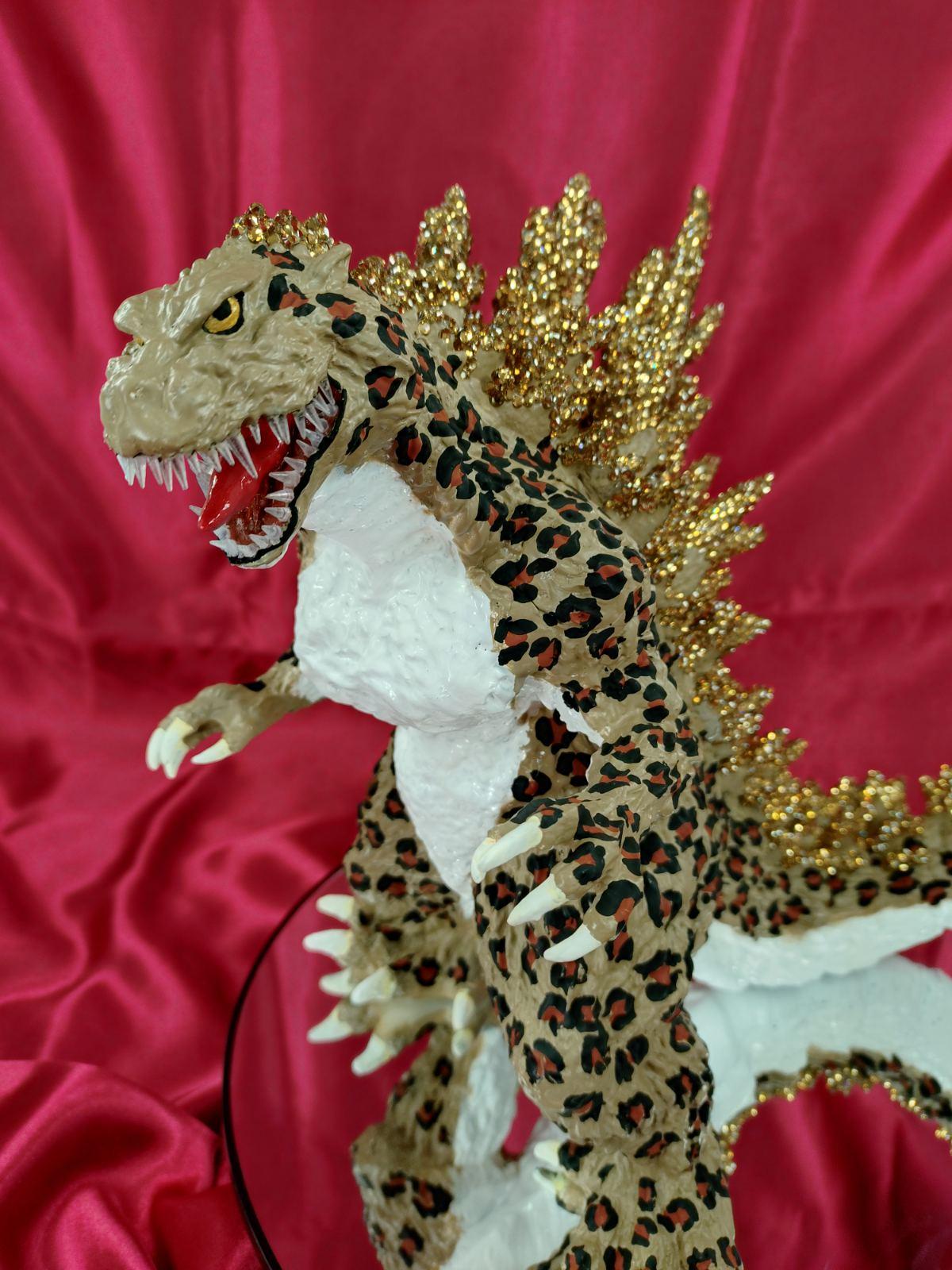 A 12inch/30cm-tall full-body Godzilla figure is meticulously hand-applied with approximately 10,000 Swarovski crystals.