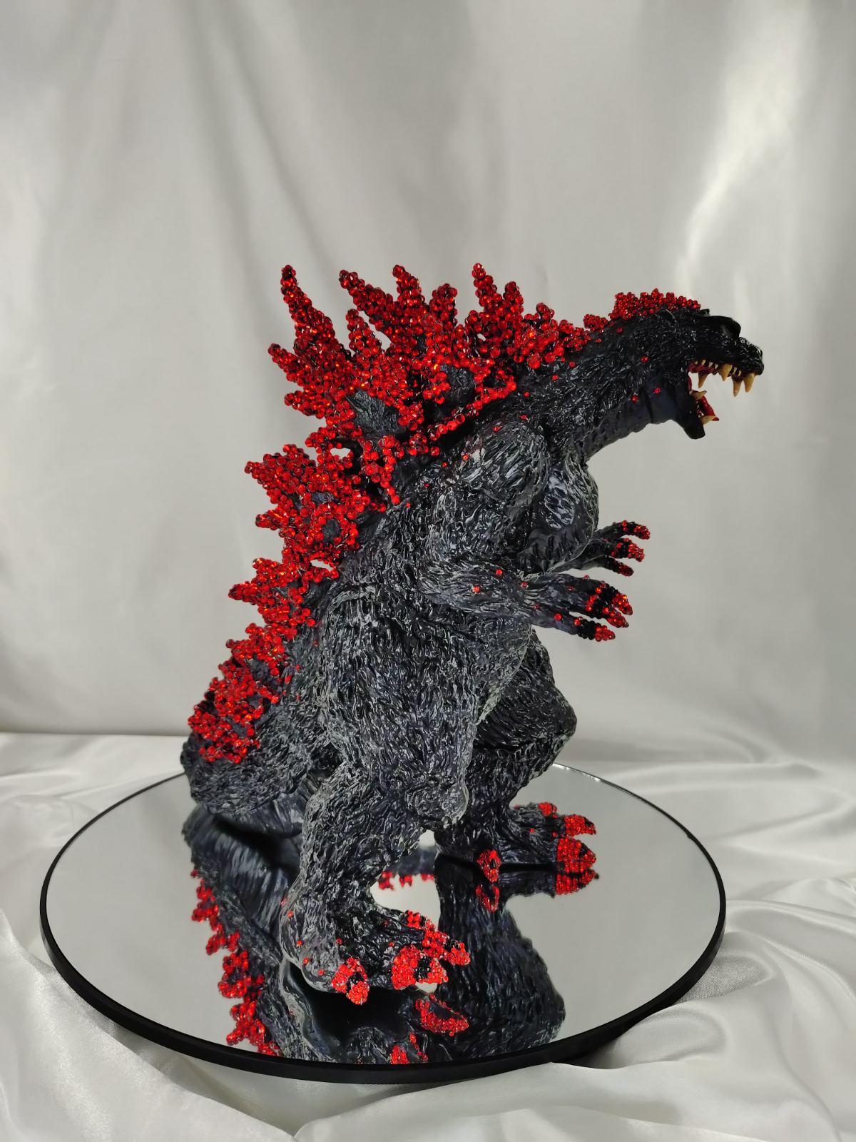 A 12inch/30cm-tall full-body Godzilla figure is meticulously hand-applied with approximately 10,000 Rhinestone.